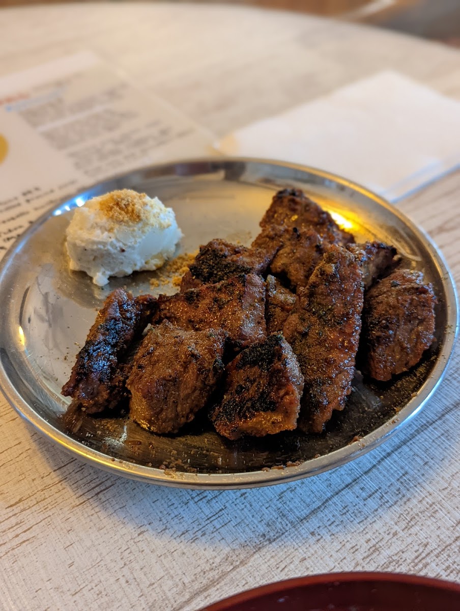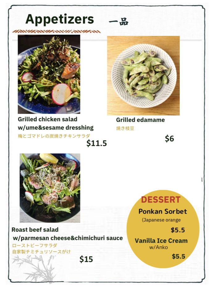 In addition, the Aburiyaki Chicken Thigh marinated in shio koji, and the fried chicken are hearty selections that won't disappoint. And be sure not to overlook the Cold Tofu with Spicy Sesame Minced Pork, a dish praised for its delightful textures and flavors that dance across your palate. For those craving something different, the Sweet Corn and Potato Salad provide a refreshing bite that complements the grilled offerings wonderfully.